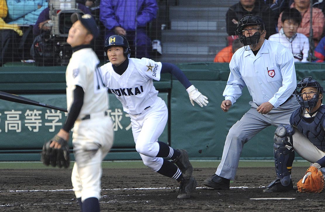 2011年3月23日、選抜甲子園1回戦・北海×創志学園、八回一死、決勝点となる本塁打を放つ川越(中央)