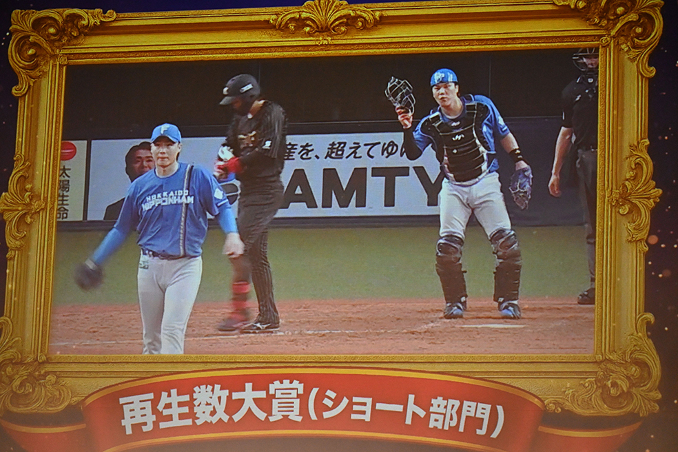 同じく、「再生数大賞」のショート動画部門には、1547万5138回再生を記録した、伏見の二塁送球をカットする山崎の動画に決定。イケメン左腕もコメント動画を寄せ「いや、あれ、逆に何でなのかなって。あれそんなに、伸びる要因あったのかなって、僕自身もいまだに分かっていないんですけど、うれしいです。野球を純粋に楽しんでいる姿を見てほしいので、もっともっと見てください。よろしくお願いします」と呼びかけた。