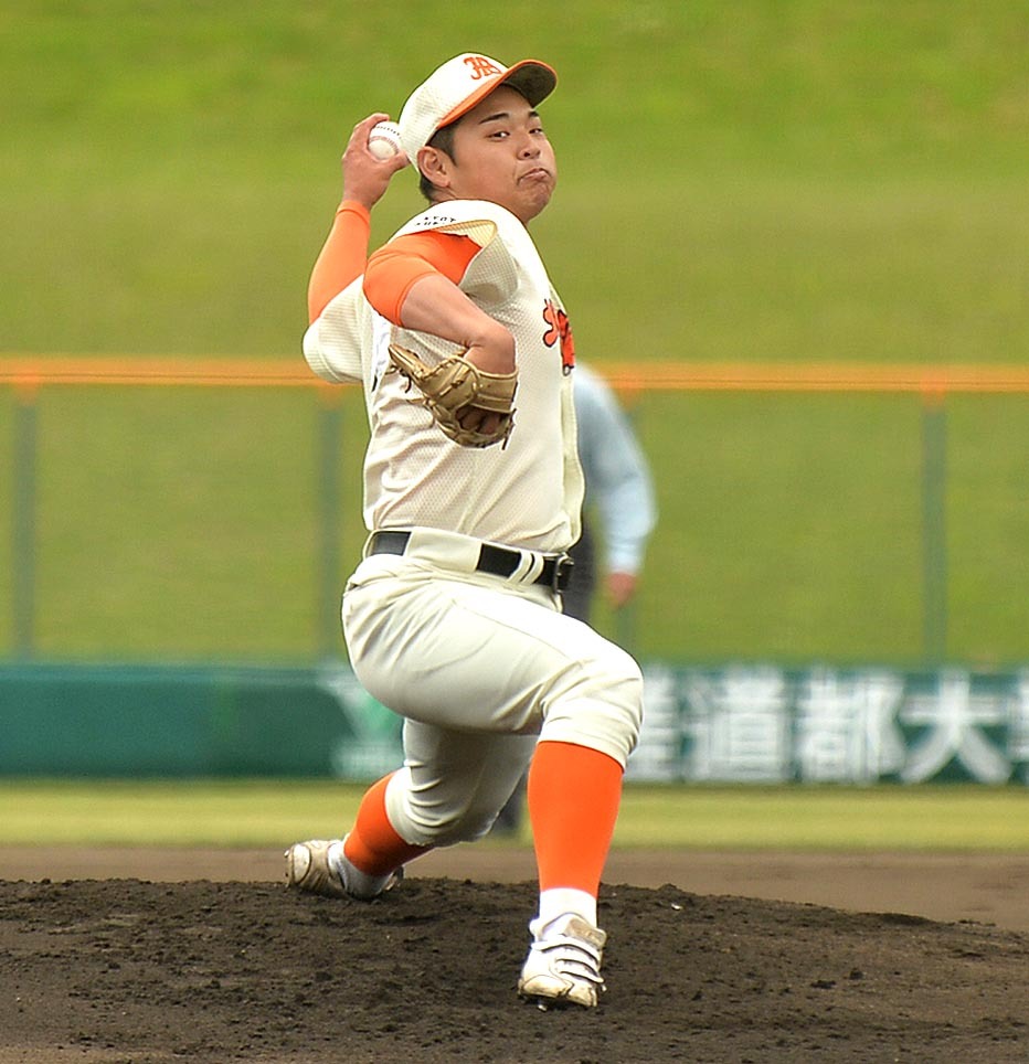 ◆北海道栄・山崎晄投手(3年)「最後は強気で投げました。エースなので自覚を持って、力強く最後までと思って投げました」