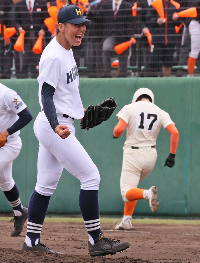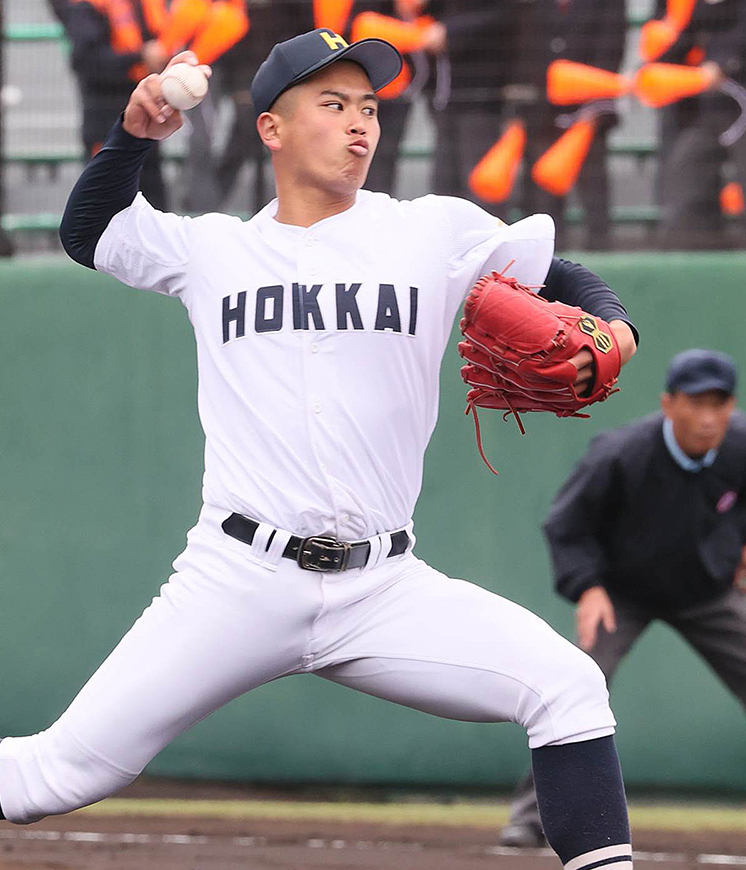 投打で北海道栄を圧倒した北海が、8年ぶりの優勝を飾った。右肘の炎症で登板を控えていた熊谷陽輝投手(3年)が先発した。今春の公式戦で初登板となったが、ブランクを感じさせず4回1安打無失点と好投。打線も一回に相手の暴投で先制すると、三回には打者12人の猛攻で一挙8得点を挙げた。試合の主導権を握った北海は、長内陽大投手(はると、3年)―岡田彗斗投手(3年)とつなぎ、13―2で大勝した。1991年大会以来の優勝を目指した北海道栄は、投手陣が崩れたのが大きく響いた。