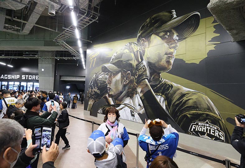 エスコンフィールドHOKKAIDOの人気撮影スポット「TOWER 11」の壁面に描かれているダルビッシュ有投手(36、パドレス)と大谷翔平投手(28、エンゼルス)
