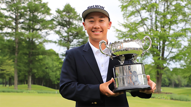 2位に6打差でスタートした2022年全国高校選手権個人8位の山本詠太(シェイクスピアCC、兵庫・大手前大1年)が最終日アウト36、イン37の73。後半14番でダブルボギーをたたき後続に3打差まで詰め寄られたが、17番、18番を連続バーディーでホールアウトし、最終的に6打差を維持したまま4日間通算1アンダーで初優勝した。