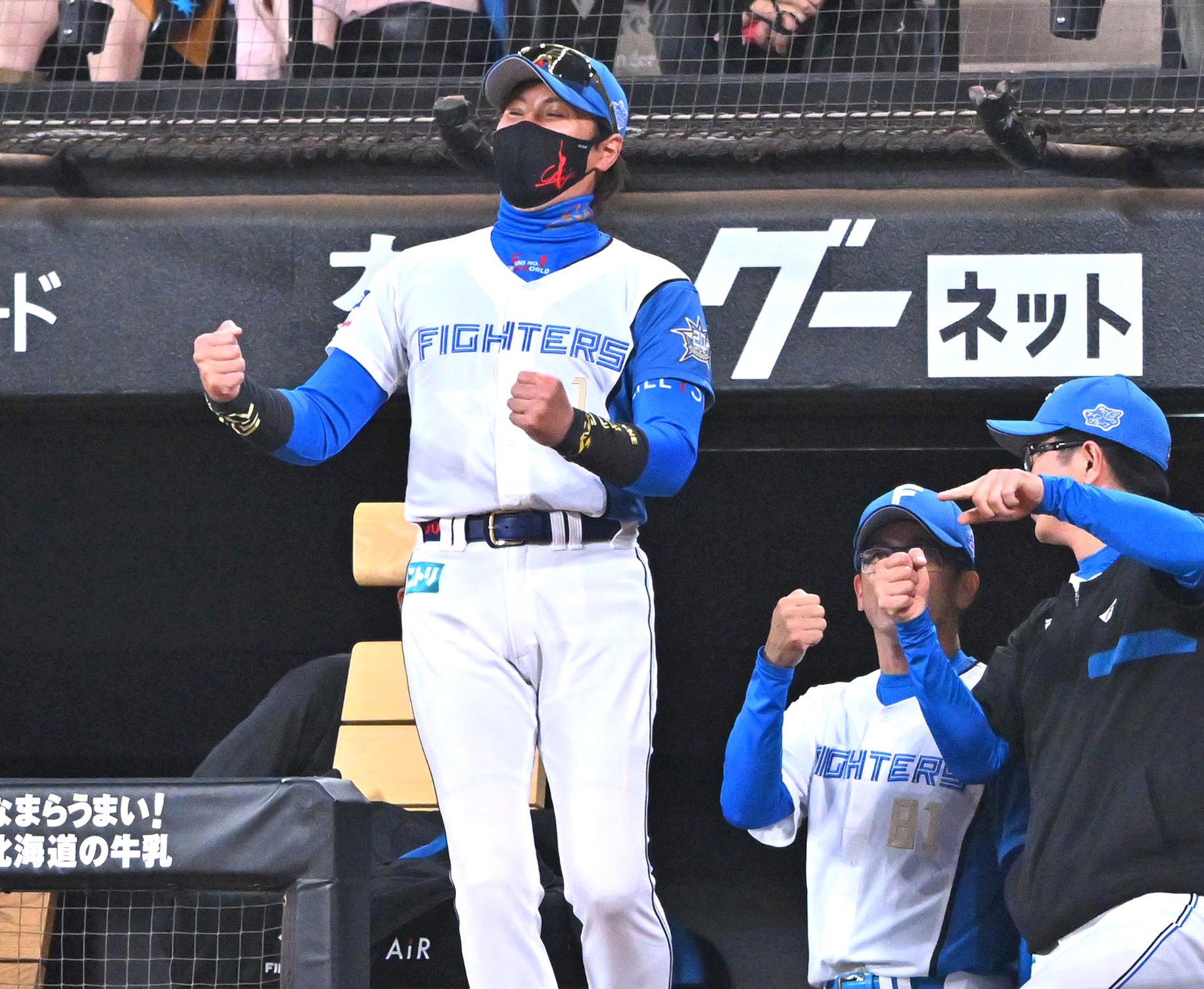 30日、ヤクルトとの交流戦初戦を勝利で飾り、ガッツポーズを見せる新庄監督