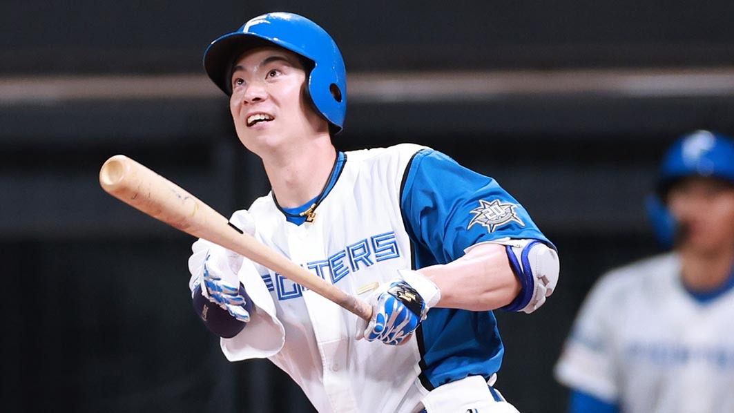 三回2死三塁、松本剛が先制の2点本塁打を放つ