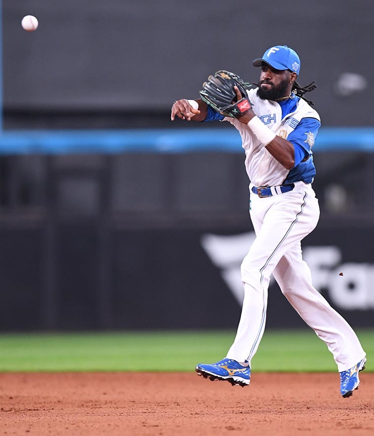 二回1死、広島・西川の打球を捕球し一塁に送球するハンソン二塁手