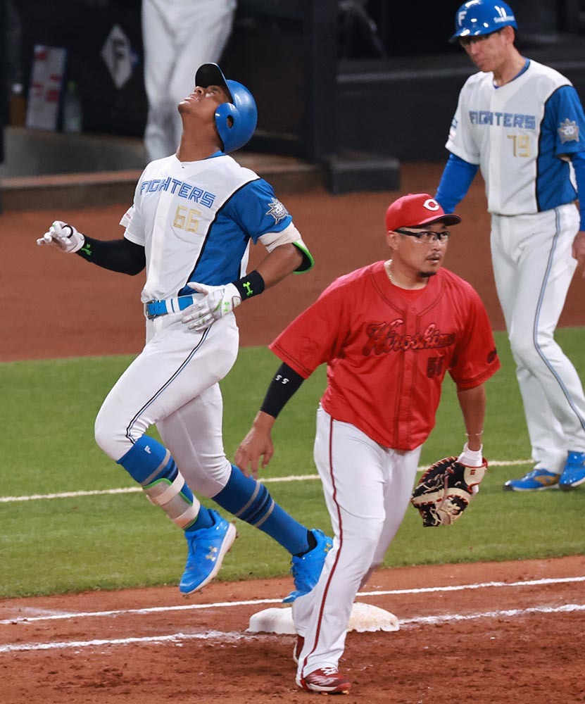 広島に今季交流戦初の連敗を喫し、カード負け越しが決定。両チーム合わせて7安打と、しびれる展開にも3度の得点機をつくって粘ったが、相手の好守に阻まれる場面もあり、1点が遠かった。新庄剛志監督(51)は試合後、「負けはしたけど、本当に戦えるチームになってきた」とコメントを残した。