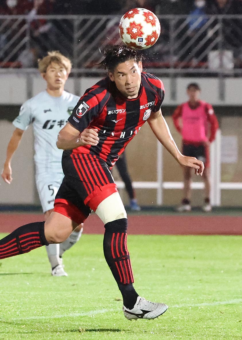 前半、相手シュートをカットするMF宮澤
