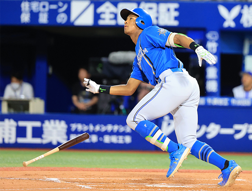 メジャーでトップクラスの実力を示した豪腕との対決は、刺激に満ちあふれていた。「やっぱりコントロールが良い。曲がり球を、振りたくなってしまう高さに投げてくるんですよ。その技術もすごいなって思いました」。ビッグネームが相手でも、その実力は十分に通用する。ファイターズの未来を担う若き大砲が、連敗中のチームに力強く光を照らした。