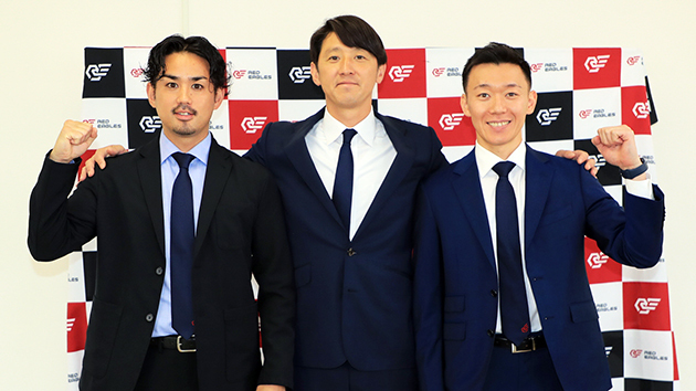 アジアリーグアイスホッケーのレッドイーグルス北海道が6月15日、新シーズンへ向け移籍加入会見を苫小牧市内で行った。昨季まで栃木日光アイスバックスでプレーした道産子FW・牛来拓都(32)と元日本代表GK井上光明(36)のベテラン2人が加わる。チームは今季、荻野順二コーチ(44)が監督に昇格。新チームは19日から陸上トレーニングを開始し7月から氷に乗る予定。リーグ王座奪回と全日本選手権の2冠獲得を目指す。