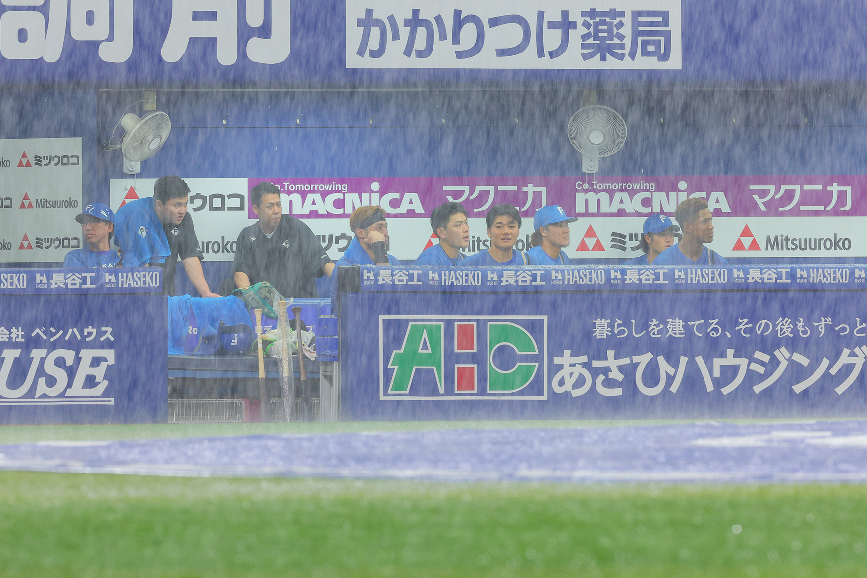 日本ハムは敵地でDeNAと対戦した。3―3の同点で二回を終了したが、雨脚が強まり、34分中断の末に降雨ノーゲームとなった。
