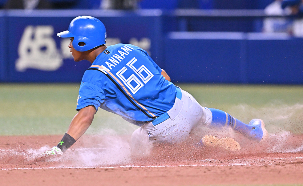 絶好のスタートを切り、本塁に突入した万波は「タイミング測りながら準備して、最高の形になったなと思います。もう(失敗しても)ベンチのせいだと思っていきました」と笑顔で回想。昨季、定石にとらわれないさまざまな策を実践したことで、余裕が生まれ「驚かなくなってきましたし、ここでこれ(予測しないサイン)が出るのか―という場面は減ってきたような気がします」と胸を張った。