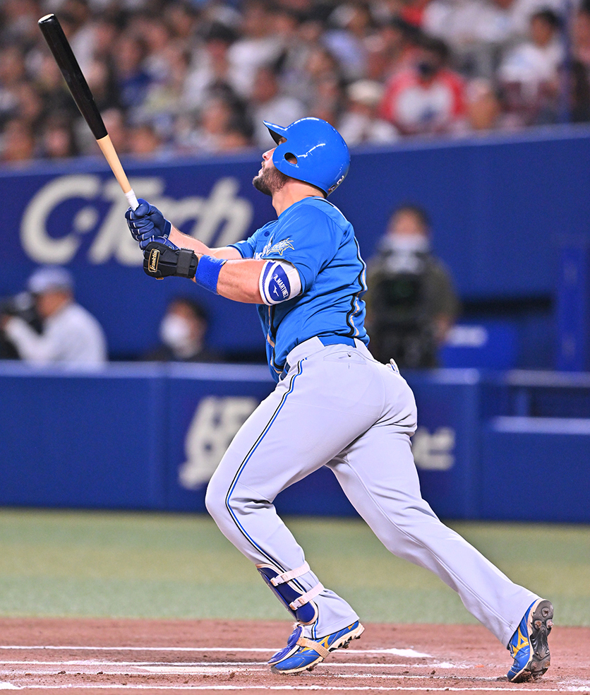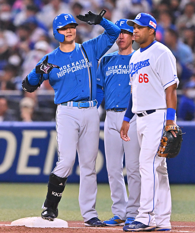 日本ハムは敵地で中日と対戦し、6-3で逆転勝利した。先発の道産子右腕・伊藤大海投手(25)は、三回まで毎回走者を背負う厳しい投球となったが、それぞれ1失点ずつに抑える粘投を見せると、五回2死一塁からプロ初安打初打点となる左越え適時二塁打を放つ。すると1―3の六回1死一、二塁、「5番・一塁」で先発出場していたアリエル・マルティネス捕手(27)が昨季までいた古巣から9号3ランを放って逆転した。