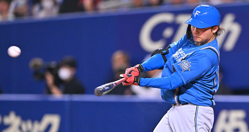 打席に入る前には、清宮からアドバイスをもらっていた。「高め高めって、ずっと(狙いを)高めに置いておけよということを言ってくれた。ちょっと振り遅れている部分はあったので、(バットをボールに)かぶせるじゃないですけど、上からいくような形で」。後輩スラッガーからの助言を生かし、敵地に快音を響かせた。記念のボールは、ベンチで清宮が回収。受け取った右腕は「両親がすごく昔から僕のバッティングを楽しみに見てくれていたので、両親にあげられたらなと思います」と優しく笑った。