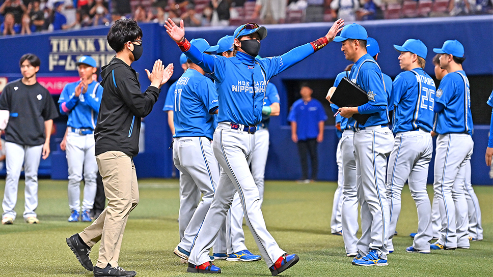 思惑通りに打つ手が決まる。選手もベンチの意思をくみ取り、動いた。一回、今季初めて1番に入った清宮が8球粘って四球で出塁。2番の松本剛がボール球に食らいついてエンドランを成功させると、四球を挟み、万波とマルティネスの連続適時打で2点を先制した。指揮官はチームプレーの重要性に触れ「初回の四球の後、松本(剛)くんがエンドランでよく当てて、転がしてくれたところで点につながって。ああいうのが大事ですよね」と目を細めた。