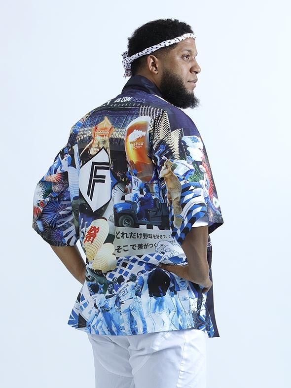 米国育ちの加藤豪は日本の伝統衣装に身を包み、「もしかしたら4歳ぐらいの時に両親に着させてもらったかもしれないですけど、自分の中では初です」とニッコリ。「イッテQのお祭り男の法被みたいな色だった」と、日本テレビ系の人気番組「世界の果てまでイッテQ!」のお祭り男で、お笑いタレントの宮川大輔をイメージしながら撮影に臨んだという。