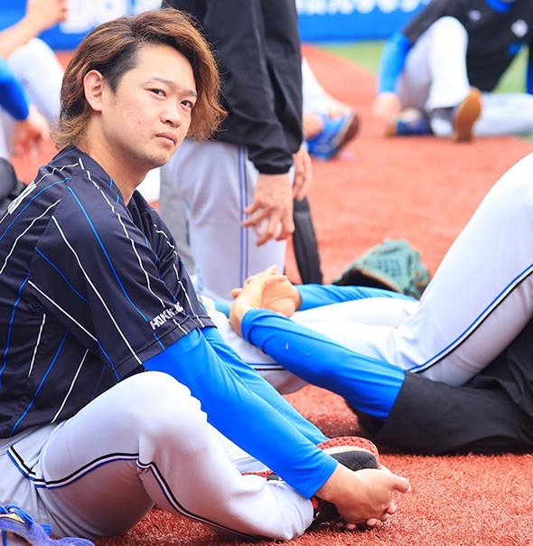 6月14日、DeNA戦の練習前にストレッチをする鈴木