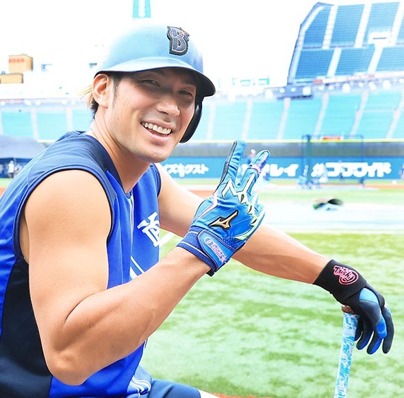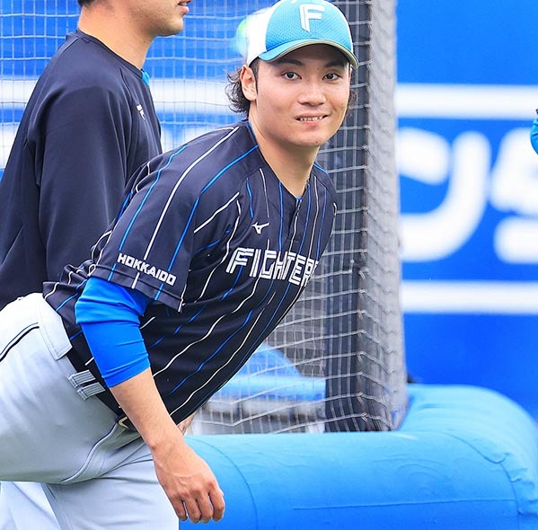 6月14日、カメラを見つけ、笑顔を見せる元日本ハムのDeNA・大田