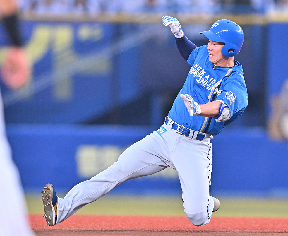 一回1死、二塁打を放った松本剛の走塁