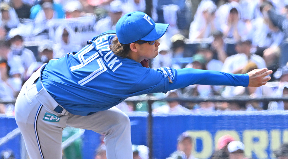 二回無死一、二塁、角中に先制の3点本塁打を打たれた鈴木