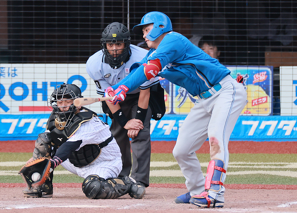 六回1死一、三塁、上川畑が一時同点となる中前適時打を放つ