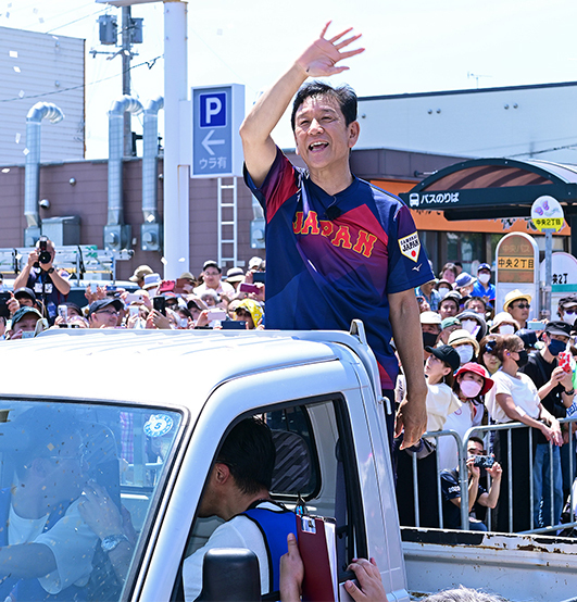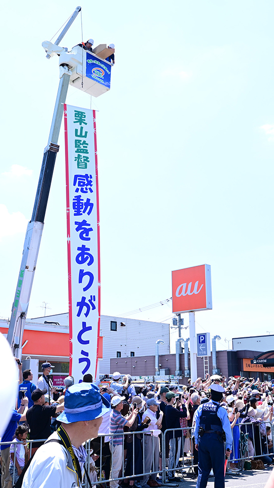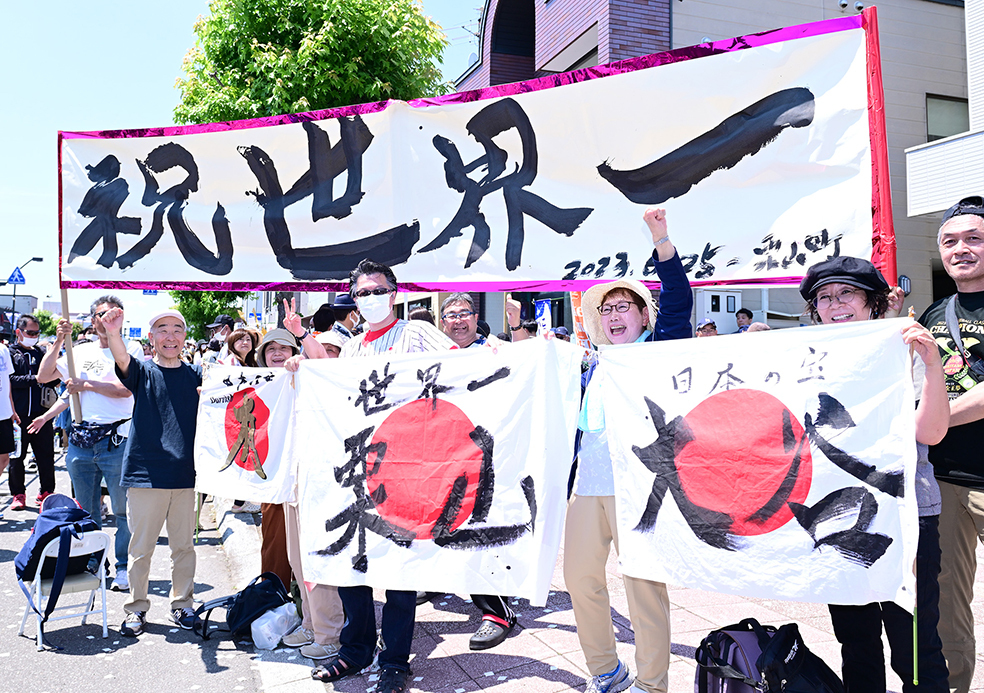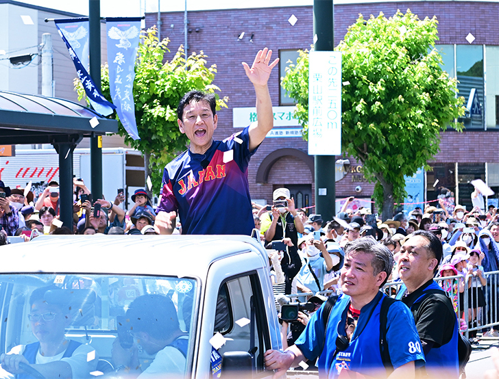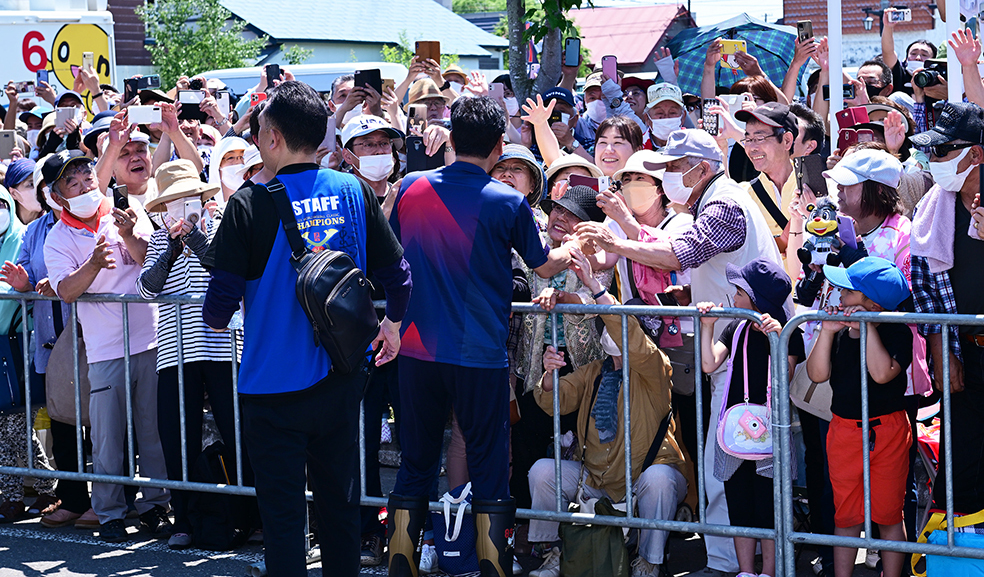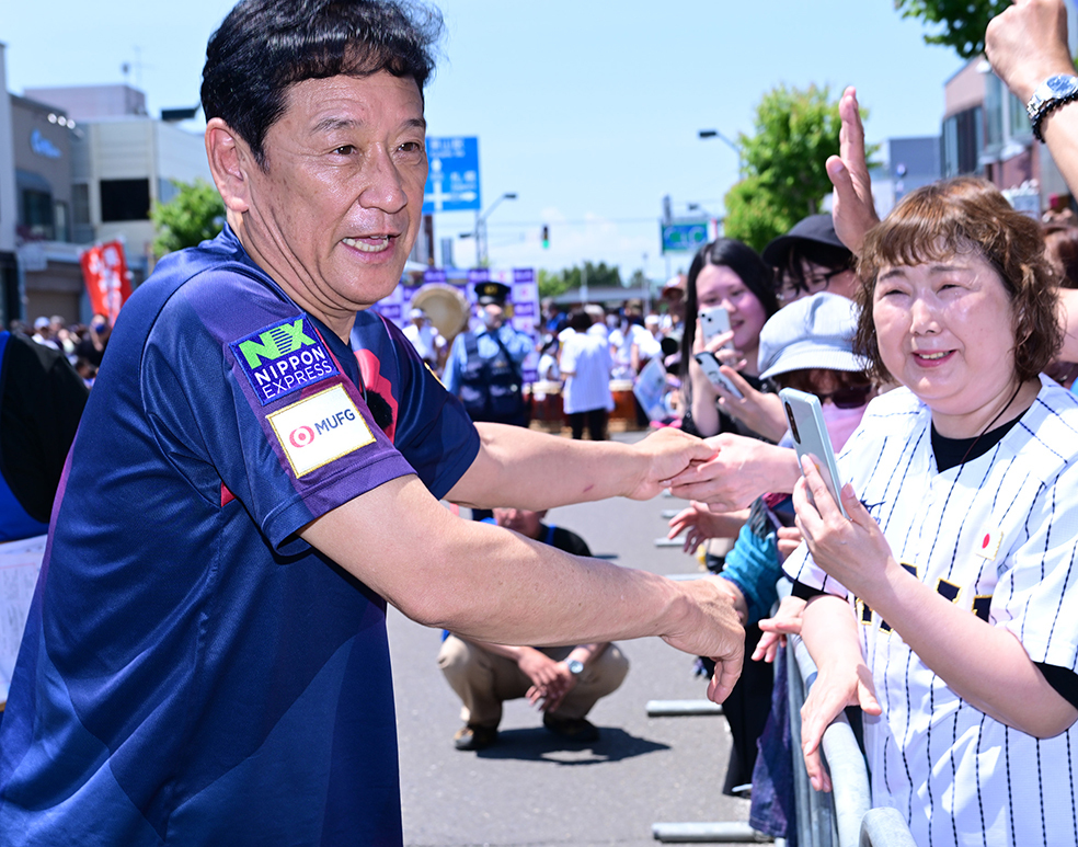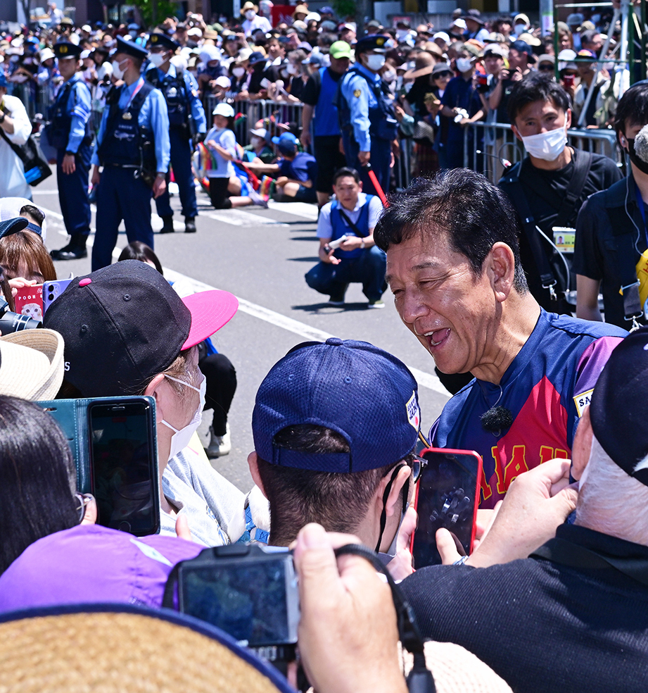 日差しも強く気温30度近くまで上昇する暑い日となったが、沿道には栗山町民11,000人を超える14,000人が詰めかけた。時に歩きながら1時間以上かけて、集まったファンとハイタッチするなど喜びを分かち合った。2012年、16年に続く3度目の〝手作りパレード〟。多くの人から「ありがとうございます」と声を掛けられたそうだが、「こちらこそありがとうございますっていう感じ。皆さんのおかげです。感謝しかないです」と礼を述べた。