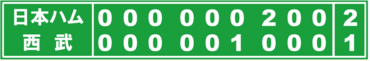 伊藤は七回、2死から四球を出しながらも、きっちりと後続を断った。八回は池田隆英投手(28)が無失点でしのぎ、ラスト九回は田中正義投手(28)が1死二塁のピンチにも動じず、リードを守り抜いた。伊藤は4勝目(4敗)を手にし、田中正は13セーブ目を挙げた。