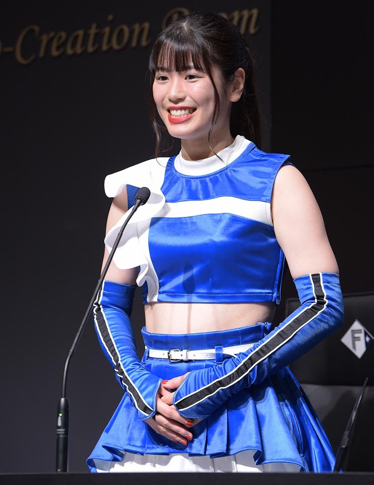 同じくファイターズガールの滝谷美夢は「今回は厚別警察署とファイターズが女性とお子さまに対する犯罪防止のための活動を行うとのことで、ファイターズガールも女性代表として積極的に活動に参加していきたいと思っています。私たち女性も犯罪に巻き込まれないために、身の回りの危険について知り、日頃から対策することがとても重要だと思います。例えば、夜道を歩く時のために、人通りの多い明るい道を探しておいたり、自宅や通勤、通学路の周りにある交番の場所を調べておくことも必要だと思いますし、ブザーなどの防犯グッズを身に付けるなど、すぐに行動に移せる防犯対策はたくさんあると思います。ファイターズが防犯啓発活動を行うことで、エスコンフィールドに来てくださった皆さんにも、自分にできることを考えていただくきっかけになれば良いなと思います」と防犯意識の向上を呼びかけた。