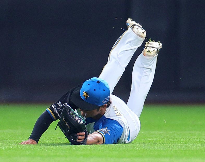 二回2死、オリックス・杉本の打球を好捕する浅間
