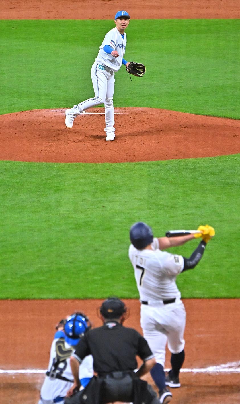 先発登板した上沢直之投手(29)が踏ん張れなかった。三回、先頭の宜保を二塁打で出塁させ、自らの暴投で無死三塁。ここで続く9番の若月に中前へはじき返され、先制された。味方打線が同点とした直後の五回には1死一、二塁で宗に2点二塁打を浴びた。