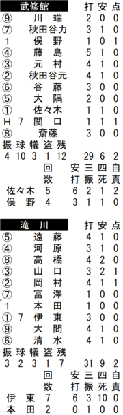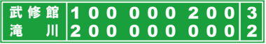 その後は、六回まで両チーム0行進の緊迫したゲーム展開。均衡を破ったのは武修館だった。七回2死から連続四死球で2死一、二塁。途中出場の関口凜武左翼手(1年)の三塁内野安打と送球ミスで2人が生還し、再びゲームの主導権を奪い返した。