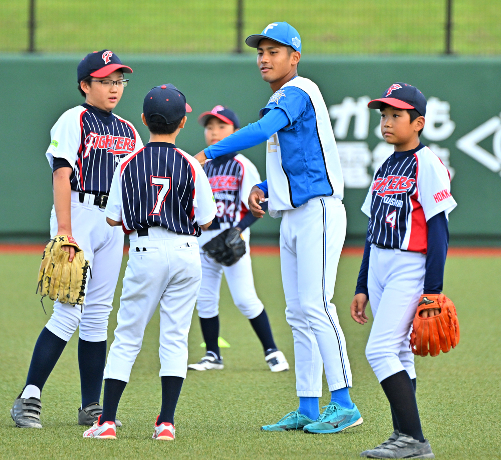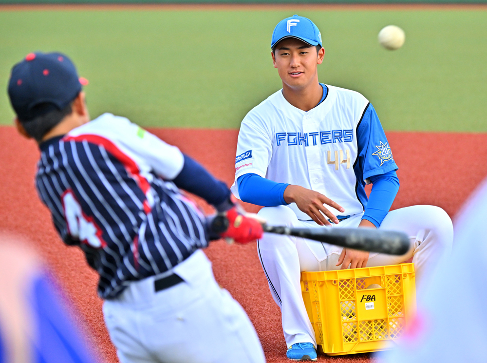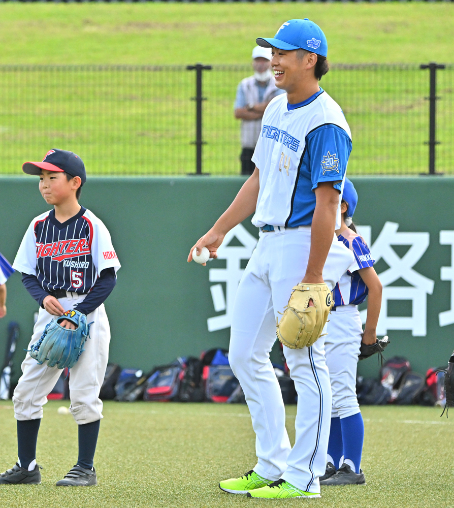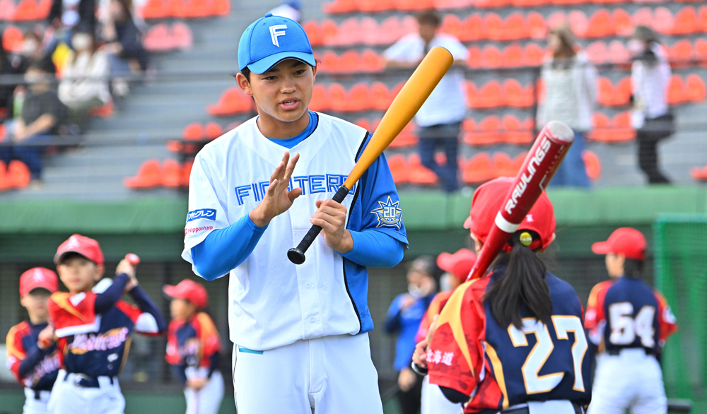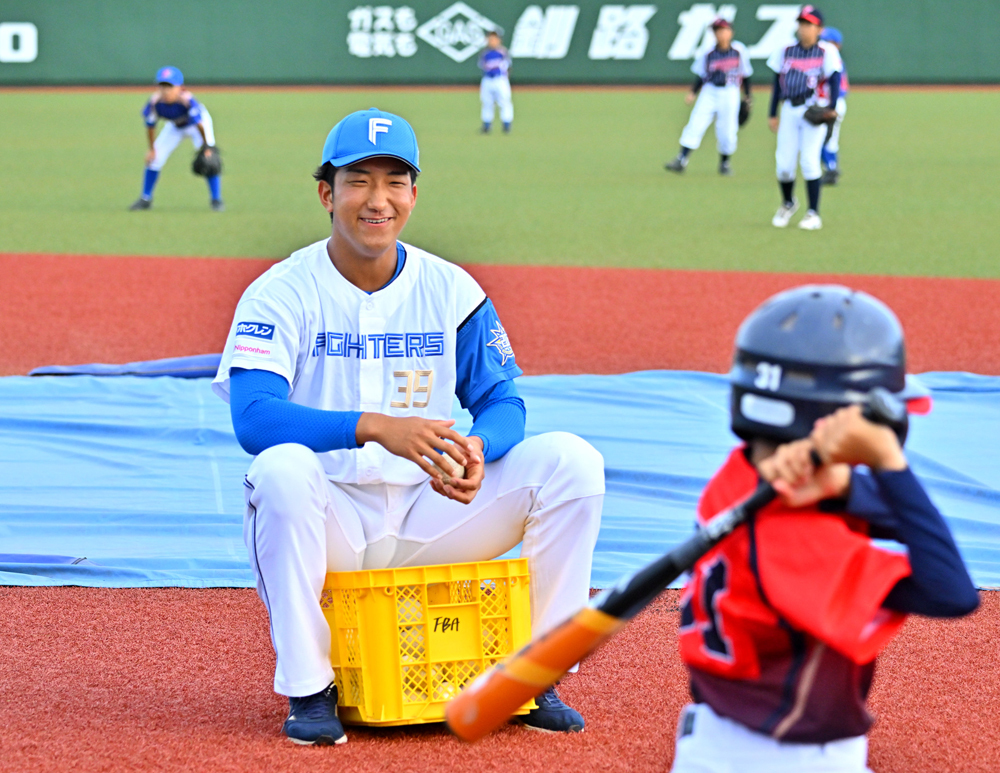 この日行われた野球教室では、釧路管内の少年野球10チーム、約200人の子どもたちと交流した。素振りの指導を担当し「投手をイメージして大きいスイングをしましょう!」と丁寧にアドバイスを送った。自らも少年時代は野球教室に参加。プロ野球選手と直接、触れ合った経験が夢の実現につながったという。
