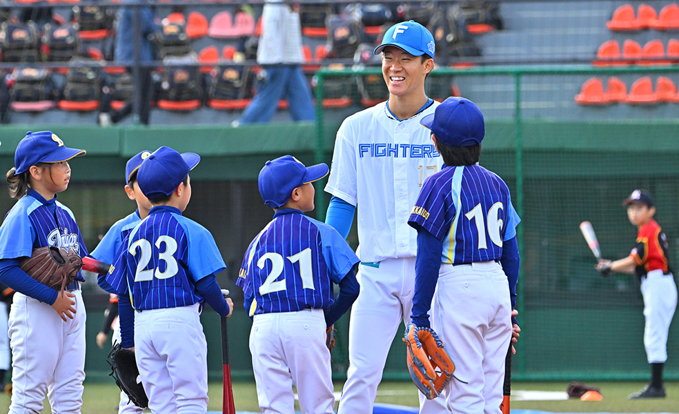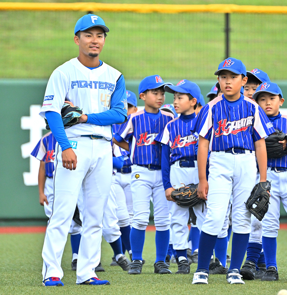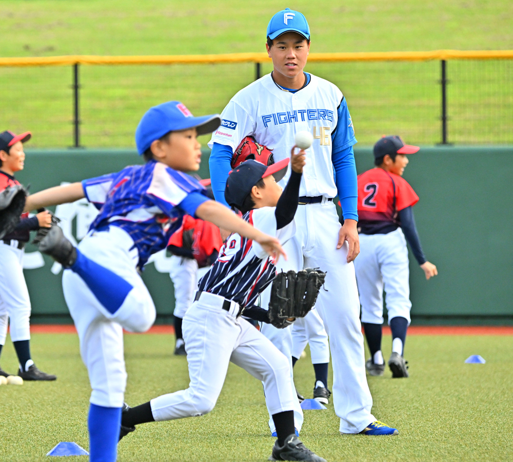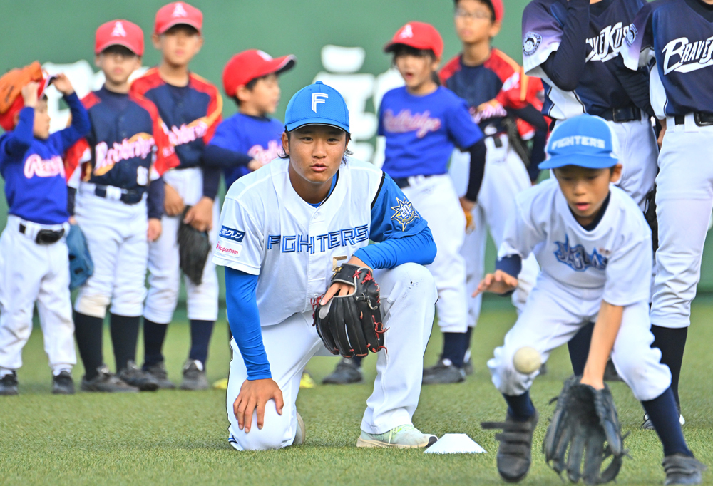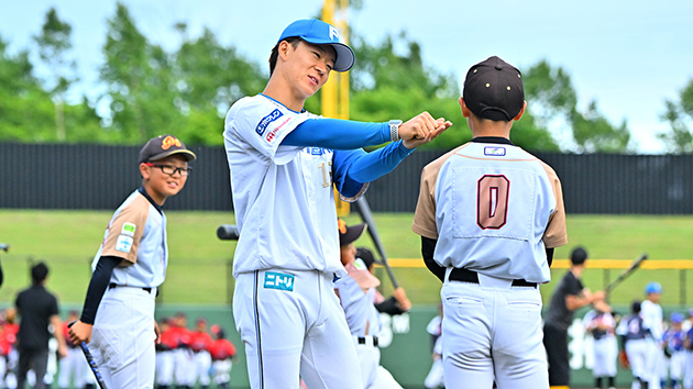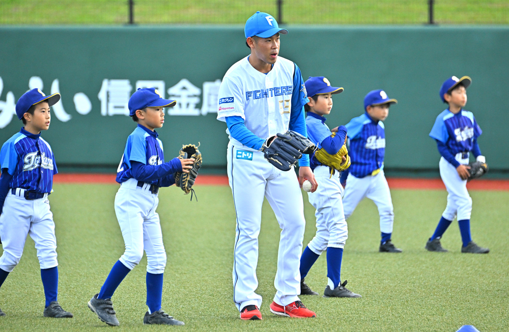 この日行われた野球教室では、釧路管内の少年野球10チーム、約200人の子どもたちと交流した。素振りの指導を担当し「投手をイメージして大きいスイングをしましょう!」と丁寧にアドバイスを送った。自らも少年時代は野球教室に参加。プロ野球選手と直接、触れ合った経験が夢の実現につながったという。