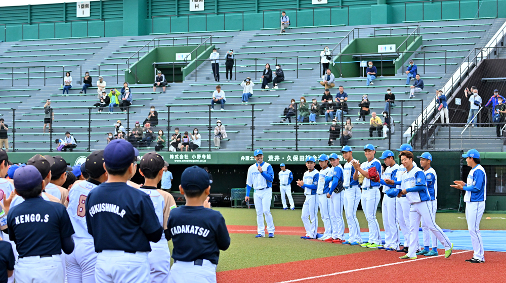 立場は変わり、今は夢を与える存在になった。直接指導を受けた厚岸レッドブリッジの小島零乃(れの、小6)くんは「スイングを教えてくれて分かりやすかった。矢沢選手のように打ったり、守備が上手になりたい」と目をキラキラ輝かせた。投打に非凡な才能を見せる背番号12は、いつまでも子どもたちのスターであり続ける。