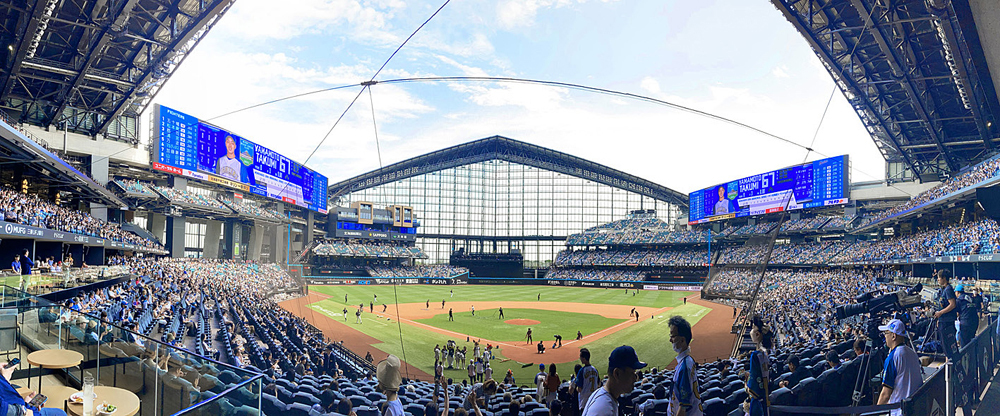9日のロッテ戦は今季2度目のルーフオープン試合。試合開始の準備が進む球場