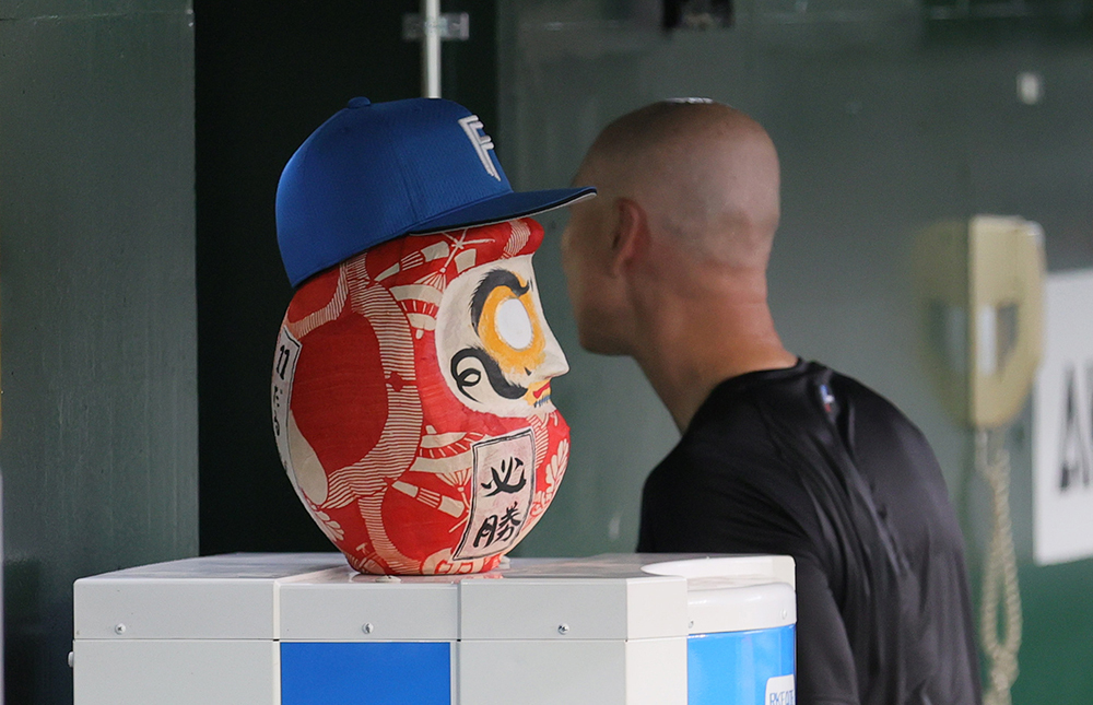 日本ハムのベンチに置かれた必勝ダルマの「だるびっしゅ」