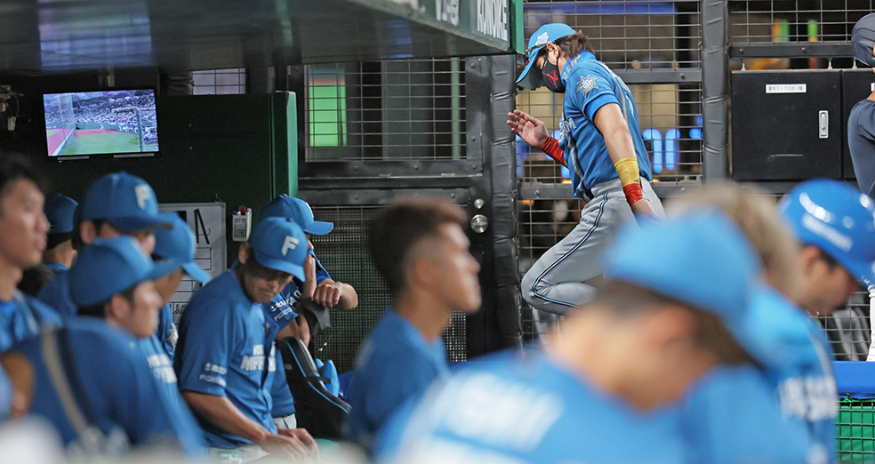 10連敗に意気消沈するベンチと、足早に引き揚げる新庄監督(奥)