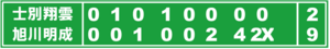 士別翔雲は先発の大西絢斗三塁手(2年)が6回3失点と試合をつくったが、2番手以降の投手が崩れ一気に突き放された。名寄支部初の甲子園の悲願は持ち越しとなった。