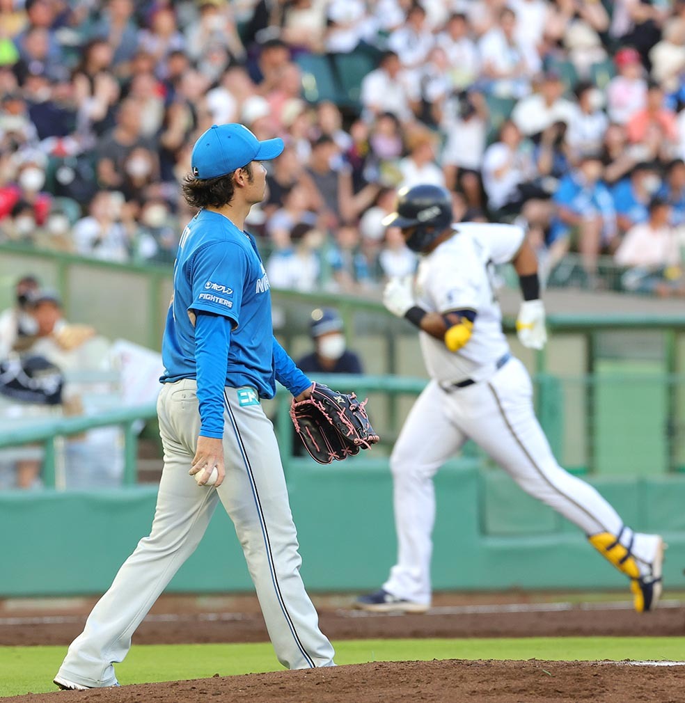 二回、先頭のオリックス・セデーニョ(右)に左越え本塁打を浴びた伊藤