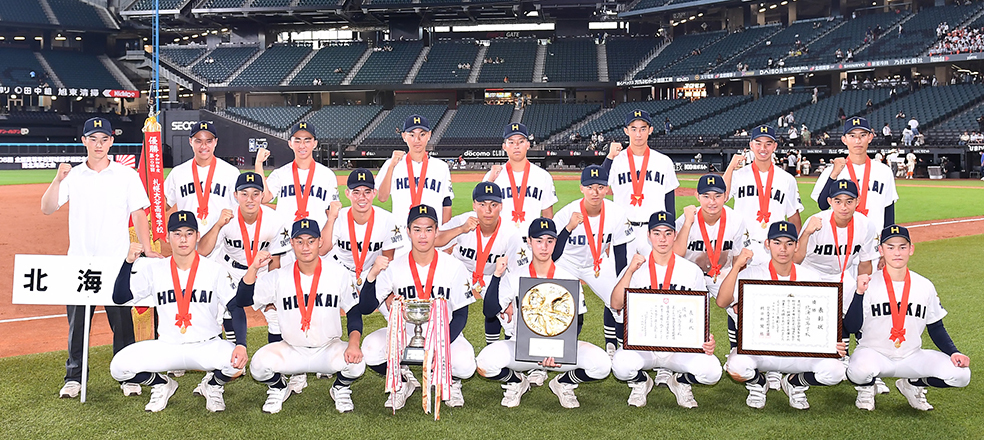 投打ががっちりとかみ合った北海が、北海道栄との決勝戦を11-2で制し、2年ぶり40度目の甲子園出場を決めた。二回、小保内貴堂左翼手の適時三塁打で先制すると、三回にも追加点。そして、五回には打者13人の猛攻で7得点のビッグイニングをつくり上げた。