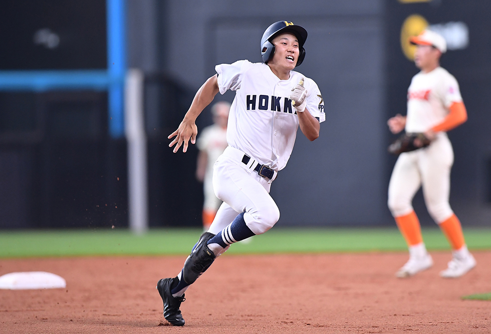 北海の下位打線が決勝でついに目覚めた。二回2死から8番・関辰之助三塁手(3)の二塁打、9番・小保内貴堂左翼手(3年)の三塁打で先制に成功。なかでも小保内は、南大会初のフル出場で、この夏初めての適時打をマーク。五回には押し出し四球を見極め、八回には中犠飛と、3打点の活躍を見せた。春の背番号7から17番に降格した悔しさをバネに、最後にバットで貢献した。
