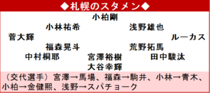 札幌は、現状を打開しようと早くも前半途中でMF宮澤裕樹主将(34)からDF馬場晴也(21)に交代。後半14分には一気に3枚換えを行いリズムを作ろうとするが柏のゴールは最後まで割れず。今季目標とする「タイトル獲得」の1つを失った。