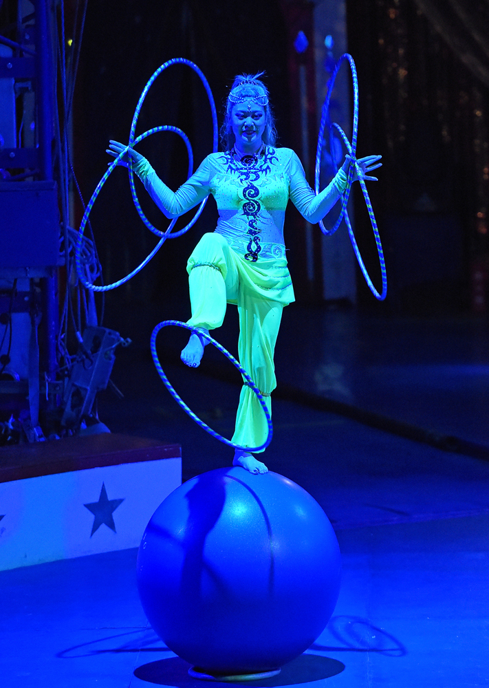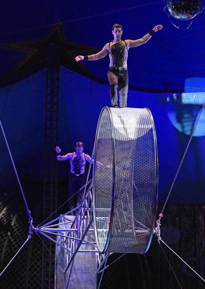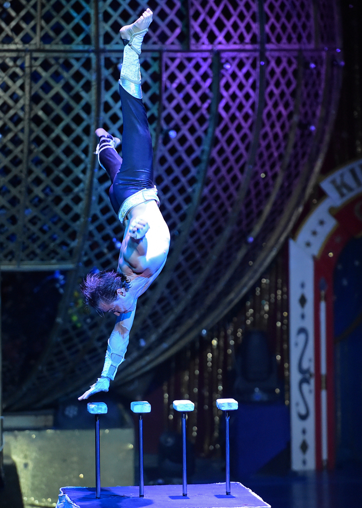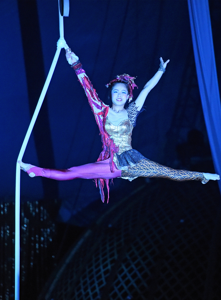 本公演はアクロバット、猛獣使い、イリュージョンなど、約20種類の演目が繰り広げられている。内容は日によって異なるが、ワクワク、ドキドキ、ヒヤヒヤと、まばたきを忘れてしまうほどの迫力で感動を与えてくれる。団員には札幌市出身の竹内玲奈さんもおり、「竹渡り」を演じている。今回は撮影した中から55枚の写真を厳選し、その迫力と感動をお届けする。