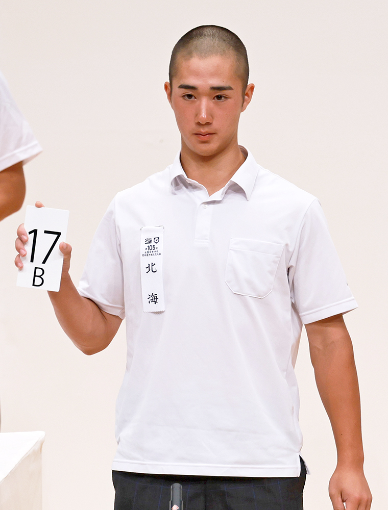 くじを引いた北海・今北孝晟主将(3年)は会場への移動中に、立島達直部長(33)から「5日目以降を引け」と言われていたそう。見事な〝結果〟を残し「実現できた」とニッコリ。7月31日に大阪入りし、数日が経過。「最初は暑いと感じたけど、慣れてきましたしびっくりするような感じではない。これから練習して暑さへの免疫を付けたい」と甲子園仕様の体に持っていく。「チームとして向かっていく集団を作って臨めるようにしたい」と意気込んだ。