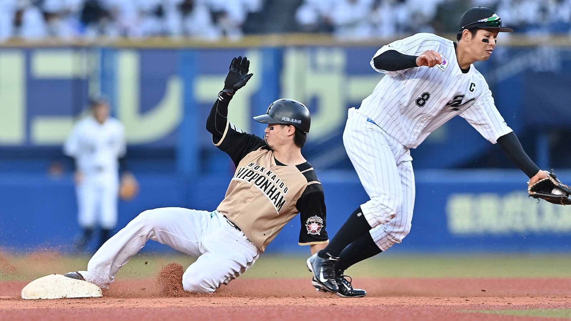 九回1死一塁で西川が二盗を決めた。これで西武・源田が持つリーグトップ24盗塁まであと「1」と迫った。