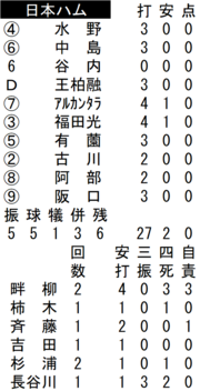 投げては先発した畔柳亨丞投手(20)が2回で4安打3四球の3失点。0―3の四回には3番手の斉藤伸治投手(25)が2死から長短2連打を浴びて1点を献上した。投手陣は一度も3者凡退のイニングをつくれなかった。