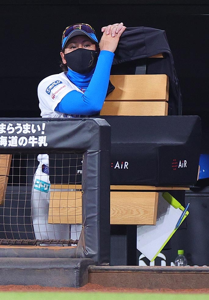 五回、マーベルの交代を告げ、ベンチに戻る新庄監督