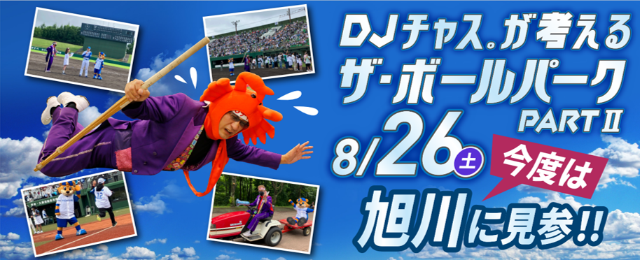 日本ハムは8月26日に旭川スタルヒン球場で開催されるイースタン・リーグ、ロッテ戦(午後1時試合開始)でファンとのふれあいや球場での体験を重視した来場者参加型イベントを実施する。題して「DJチャス。が考えるザ・ボールパークPARTⅡ~今度は旭川に見参!」だ。