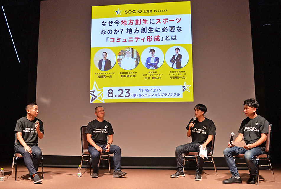 この共同経営するメンバーでSOSIOというコミュニティーを形成。「スポーツチームを共同経営しながら地域を活性化する循環をつくっていきたい」と三木代表。共同経営することにより、互いのコミュニケーションはより密となり、新たなアイデアが生まれやすくなっていく。「僕自身だけでは経験不足でできないところがたくさんある。地域でいろんな事業を成功されてきたような方々に協力いただいて、経営体制を強化する」。株式会社どんぐりの野尻代表は「イエロースターズをきっかけに、今までになかったつながりが明らかに出てきている」とメリットを実感している。
