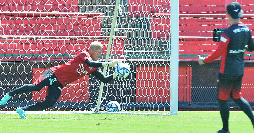 菅野が全体練習に戻ってきたこの日は、トップチームに登録されている5人のGKが勢ぞろい。活気あふれる中でトレーニングが繰り広げられた。