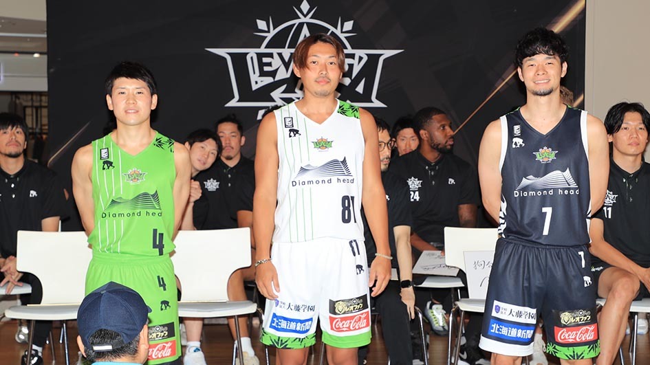 B1レバンガ北海道は2日、北広島市内のショッピングモールで毎年恒例のTIPOFFイベントを行いブースター400人が集まった。イベントには合流前の外国籍選手2人を除き選手11人とスタッフが参加。選手それぞれが今季の抱負を掲げ、新ユニホームのお披露目も行われた。チームは9月9、10日に札幌・北海きたえーるで行われるB1中地区ファイティングイーグルス名古屋とのプレシーズンマッチで本格始動。開幕戦となる10月7日のアウェー・秋田ノーザンハピネッツ戦へ準備を整える。